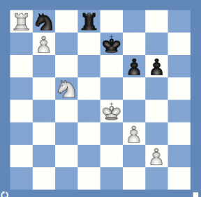 1. d4 e6; 2. c4 Nf6; 3. Nc3 Bb4; 4. Qc2 I used to play the slightly more popular 4. e3 in earlier times, but having the shiny new Vigorito book, I thought why not? 4…d5; 5.cxd5 the most popular reply 5…c5 Ok, that’s Vigorito back on the shelf – can’t find this or a likely transposition. Do wish he listed the page numbers in the chapter index though! 6.dxc6 finally got to take en passant in a real game! 6…Nxc6; 7.e3 e5; 8.dxe5 Nxe5; 9.a3 Ba5; 10.b4 Bb6; 11.Be2 will I ever get the King side developed? 11…a5; 12.Bb2 axb4; 13.axb4 Rxa1+; 14.Bxa1 Nc6; 15.Qb1 well a pawn is a pawn, might come in useful later! King side still on ‘to do’ list! 15…Qe7; 16.b5 Ne5 ; 17.Nf3 Neg4 ; 18.Nd1 … otherwise Nxf2 would make a mess of things! 18…0–0 Wonder if I’ll dare do that! 19.h3 Nh6 ; 20.0–0 at last, but doesn’t feel as cosy as usual here! 20…Ne4; 21.Bd3 Ng5; 22.Nxg5 Qxg5; 23.Bxh7+ Kh8; 24.Be4 Bxh3; 25.Bxb7 Be6; 26.Qb4 No time to be subtle! 26…Rd8; 27.Bd4 Bxd4; 28.exd4 Nf5; 29.Qc5 Qf4; 30.Nc3 Rxd4; 31.Ne2 Qd6; 32.Qxd6 that’s cooled things down a bit! Rxd6; 33.Be4 g6; 34.Rb1 I did say that pawn might be useful and with a rook behind it just as the book tells you … 34…Rb6; 35.Nc3 Nd6; 36.Bc6 Bc4; 37.f3 the problem with moving any of my pieces is that the exchange sacrifice for the pawn will lead to a drawn ending. 37…Kg7; 38.Kf2 Rb8; 39.b6 one step nearer! 39…Bd3; 40.Rb3 Nc4; 41.Na4 Bf5; 42.Bd5 Bd7; 43.Rb4 Ne5; 44.Nc5 Bc6 I’m sure she needed to keep the Bishop on for any chance of a draw 45.Bxc6 Nxc6; 46.Rb2 Rd8; 47.b7 almost there! 47…Nb8; 48.Ke3 once more unto the breach …! 48…Kf6; 49.Ra2 Ke7; 50.Ra8 f6; 51.Ke4, black resigned