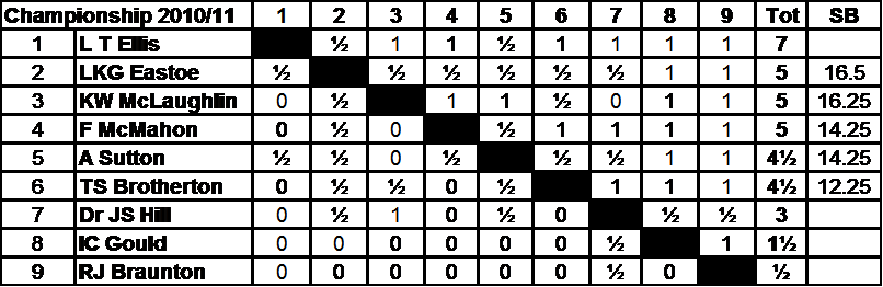 BCCA Champion 2010/11 is Les Ellis! who wins by 2 clear points, Runner Up is Leslie Eastoe. Congratulations to both players.